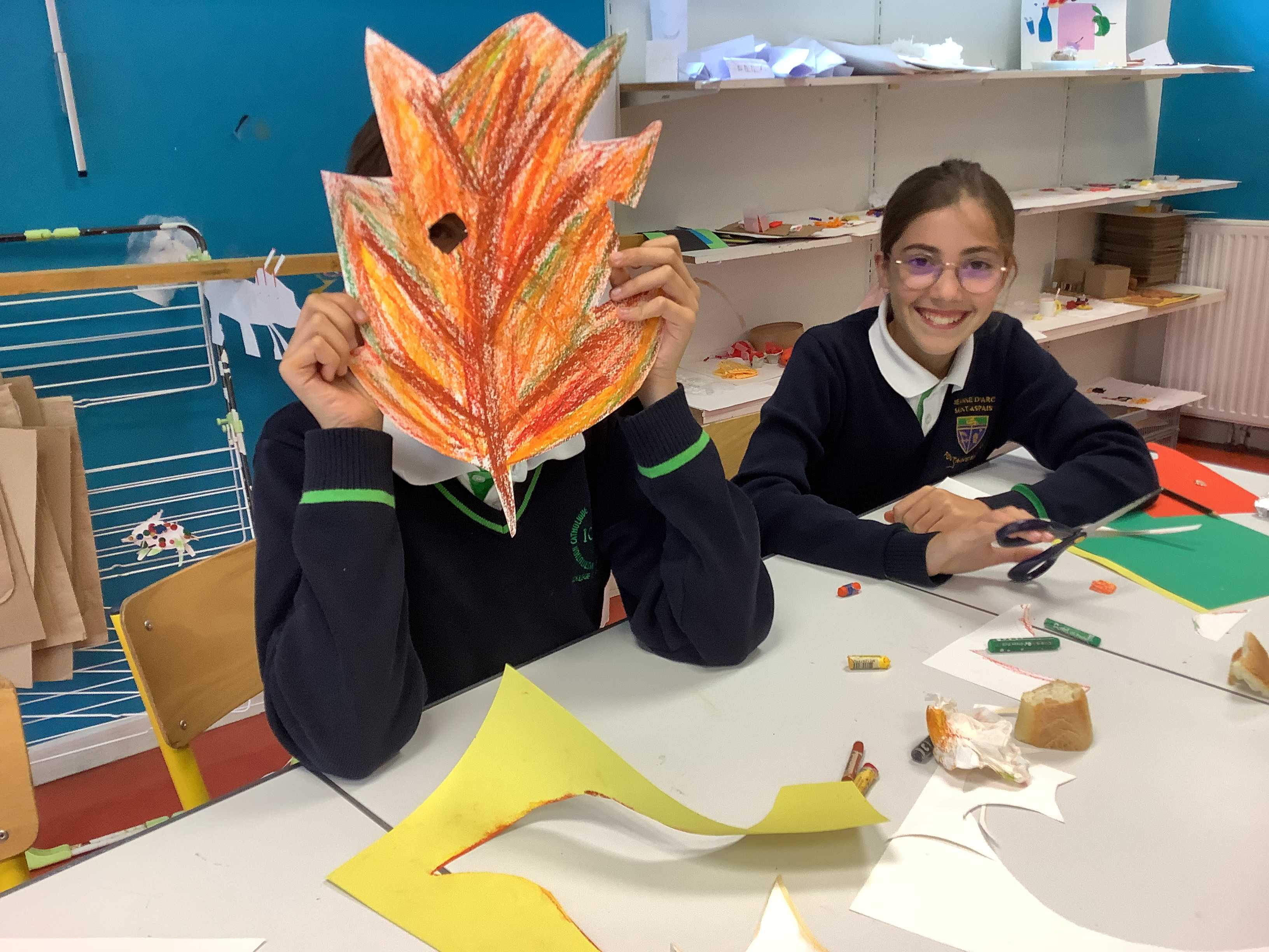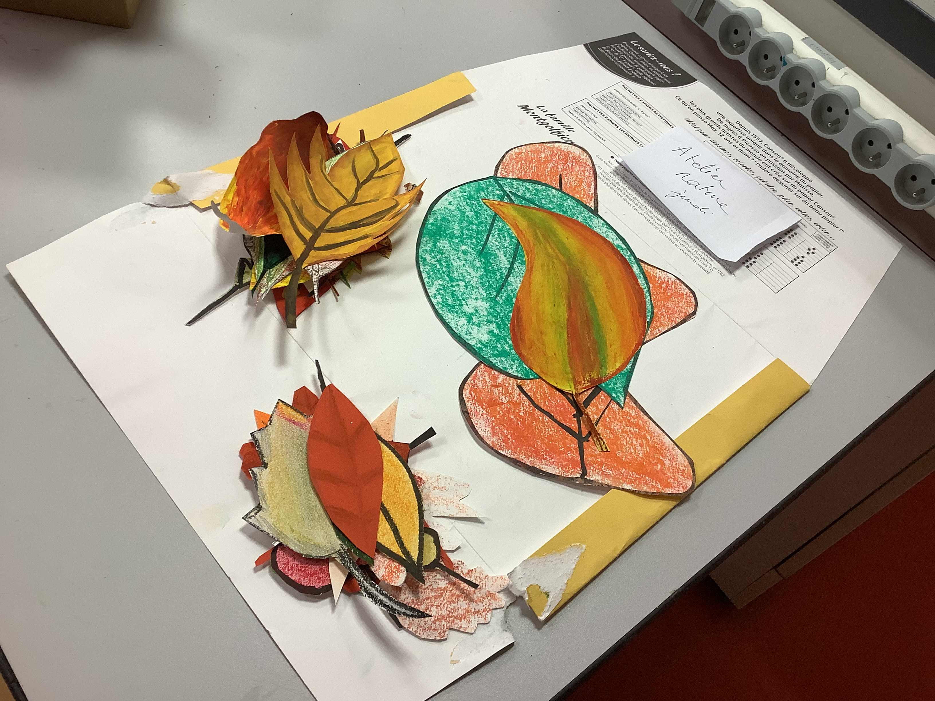 Dans le cadre des ateliers libres du midi, les élèves de « L'atelier nature » (atelier de pratique plastique encadré) se sont essayés à la réalisation d'une œuvre collective sur le thème de l'automne.