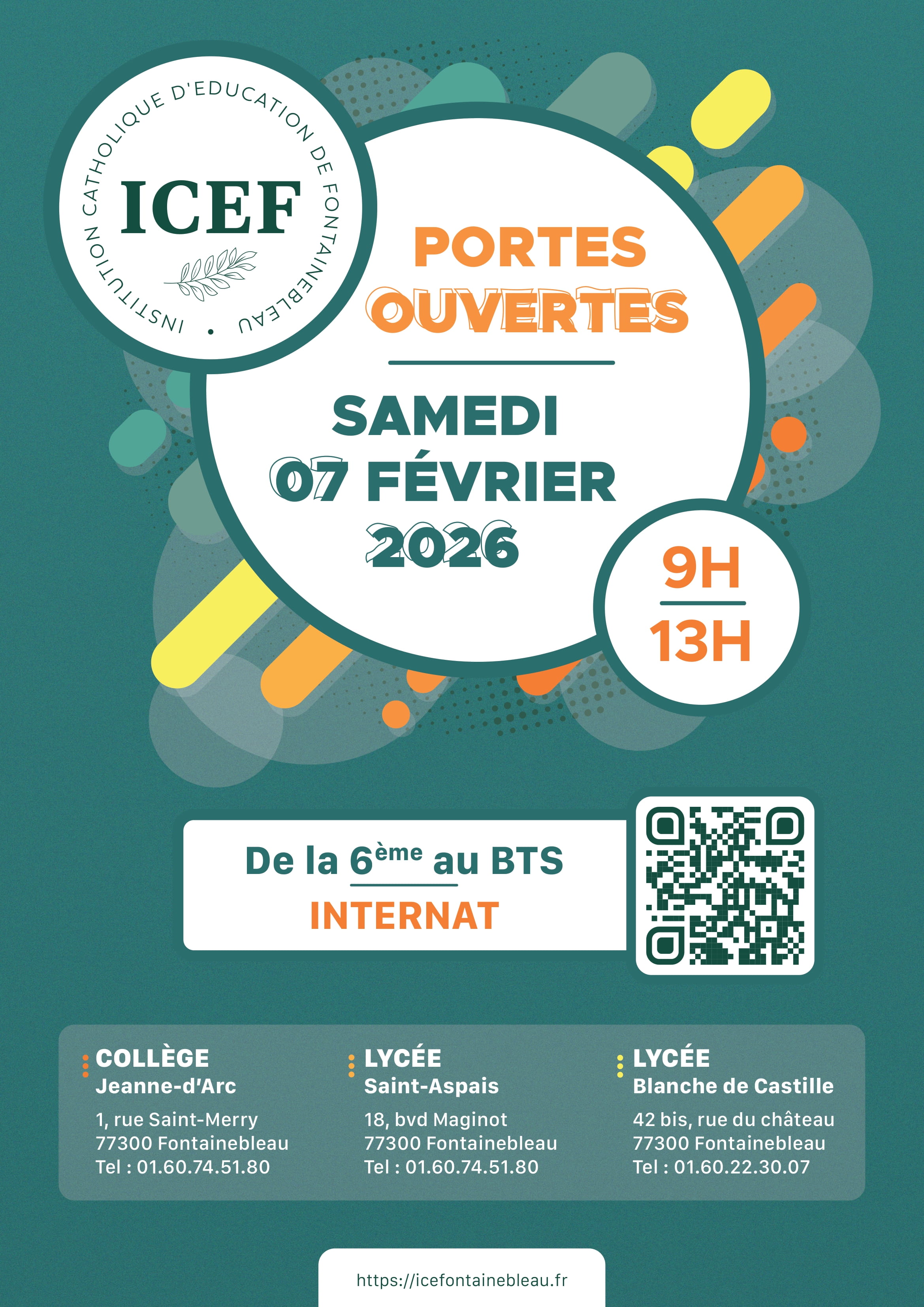 inscriptions-college@icefontainebleau.fr ou inscriptions-lycee@icefontainebleau.fr